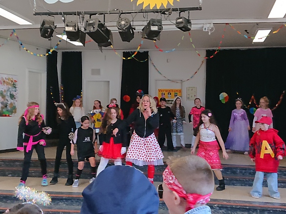 Die Tanz AG hatte unter der Leitung von Frau Riemer eine Choreograpie vorbereitet. Anschließend rockte die ganze Schule verschiedene Rhythmen unter ihrer Anleitung. Die Tanz AG findet mittwochs von 15.15 bis 16 Uhr in der Turnhalle statt.