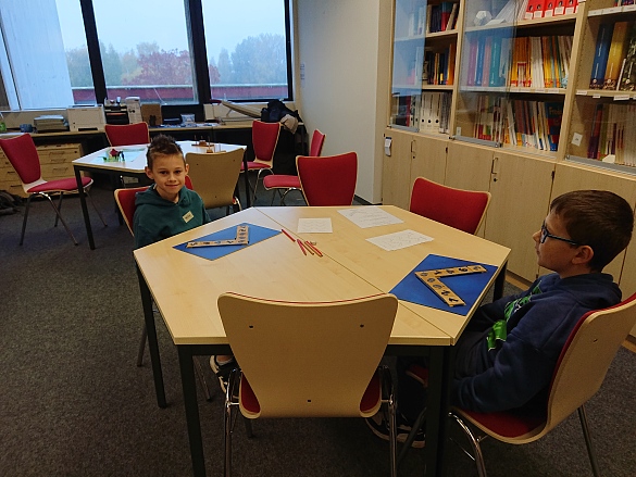 Luciano und Phillip knobeln am "Zahlenwinkel"