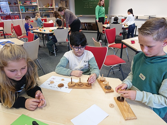 Den "Der Turm von Hanoi" bauten Adam, Noah und Emma nach Anleitung.