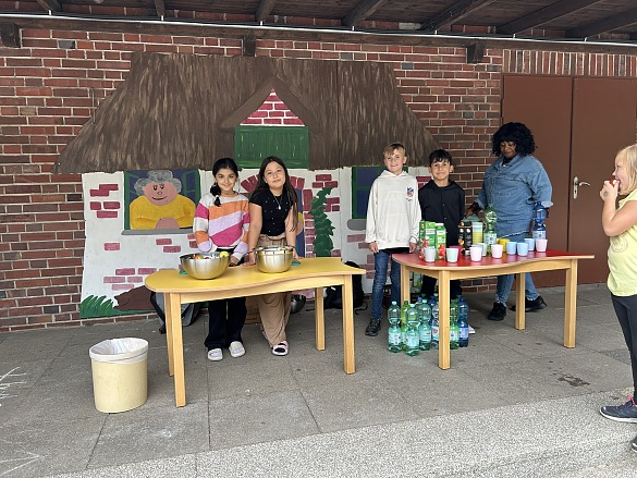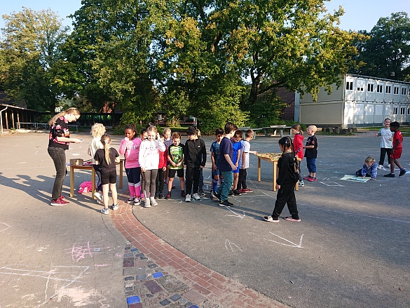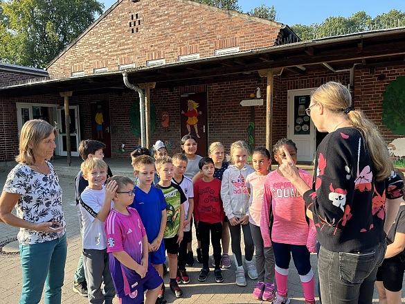 Im September war es soweit: Nachdem die Klassen 1 und 2 sowie 3 und 4 im Sportunterricht für den Sponsorenlauf trainierten hatten, startete die Veranstaltung für den guten Zweck. Für jede Runde, die die Schülerinnen und Schüler zurücklegten, zahlten Sponsoren eine vorher festgelegte Geldsumme. Über 200 Kinder waren dabei und liefen insgesamt 3.000 Runden. Der Betrag, der so zusammenkam, ging zu einer Hälfte an die BREMER ENGEL der Erika Müller Stiftung und zur anderen an den Schulverein der Grundschule Rablinghausen für eigene Aktivitäten. Der Engel Martina Klose nahm einen symbolischen Spendenscheck über 3.455 Euro von den Schülervertretern der Schule entgegen. Sie erfuhr, dass sich die Kinder bewusst unter drei Projekten für die Familienhilfe der BREMER ENGEL entschieden haben. „Wir finden es gut, dass sie Hausbesuche machen und kranke Kinder deshalb schneller aus dem Krankenhaus entlassen werden können“, erzählten die Vier. Die mobile Kinderkrankenschwester wiederum berichtete von ihrer Arbeit. Mit dabei waren auch Schulleiterin Simone Lammers und Marike Pavlakos, Vorstandsvorsitzende des Schulvereins, die den Spendenlauf mit dem Kollegium organsiert hatten.