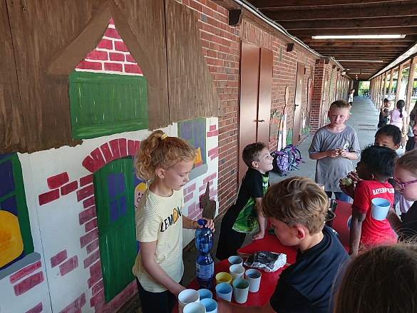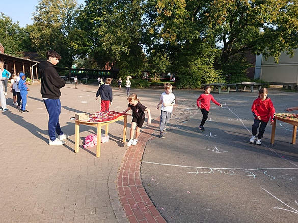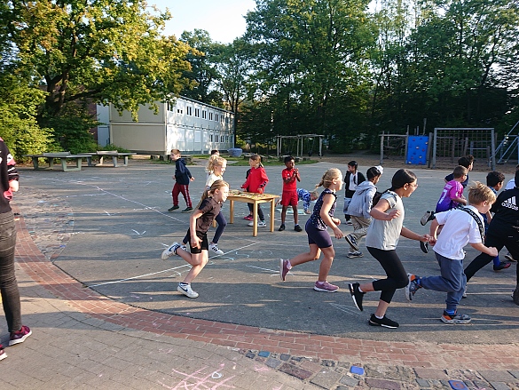 Am Freitag sind wir 15 Minuten auf dem halben Schulhof gelaufen. Für jede Runde hat man sich ein Band genommen. Es waren viele Eltern da und haben geklatscht. Danach haben wir Apfel und Banane gegessen und Wasser getrunken. Die Musik war cool und es hat viel Spaß gemacht. Ende.